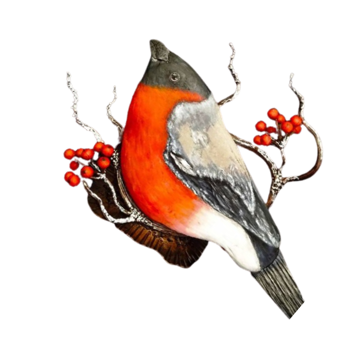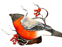 На красавцев снегирей.